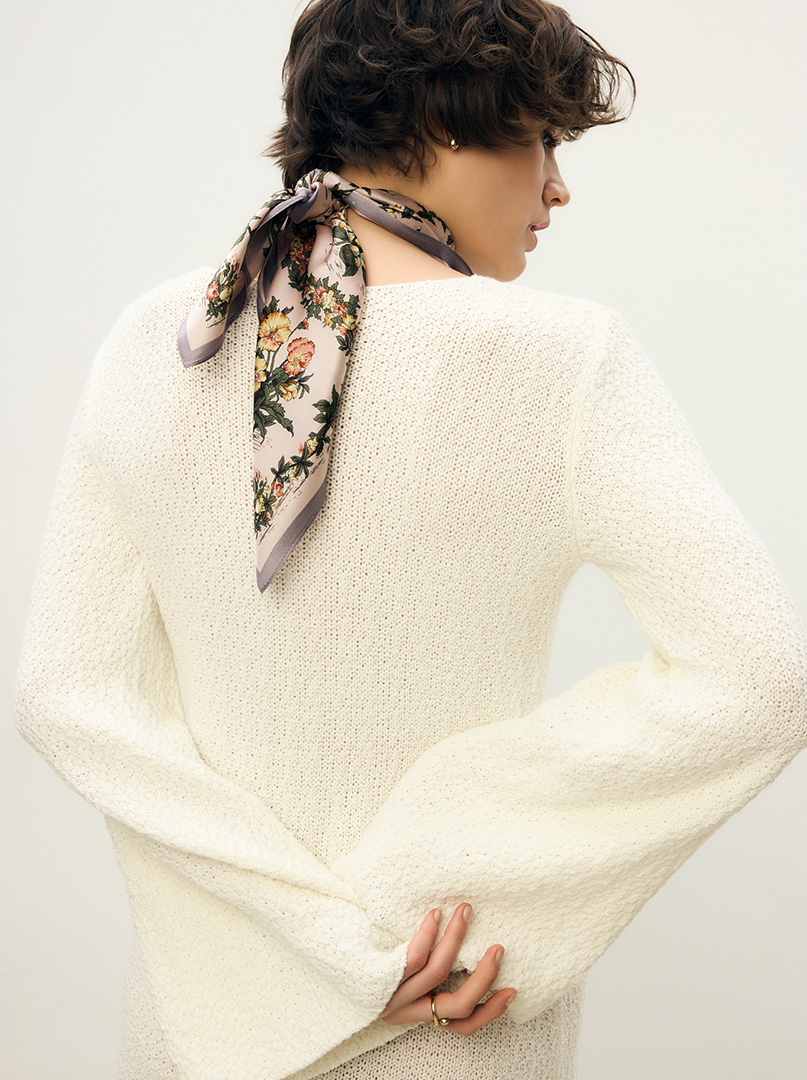 Apaszki 53 × 53 cm z kolekcji Premium to małe, luksusowe akcenty o mocy wielkich stylizacji — lekkie, zmysłowe i stworzone jakby prosto na backstage’u „Vogue”. Dodają lookowi wyrafinowanego rytmu i modowej pewności siebie, niezależnie od tego, jak je zawiążesz.