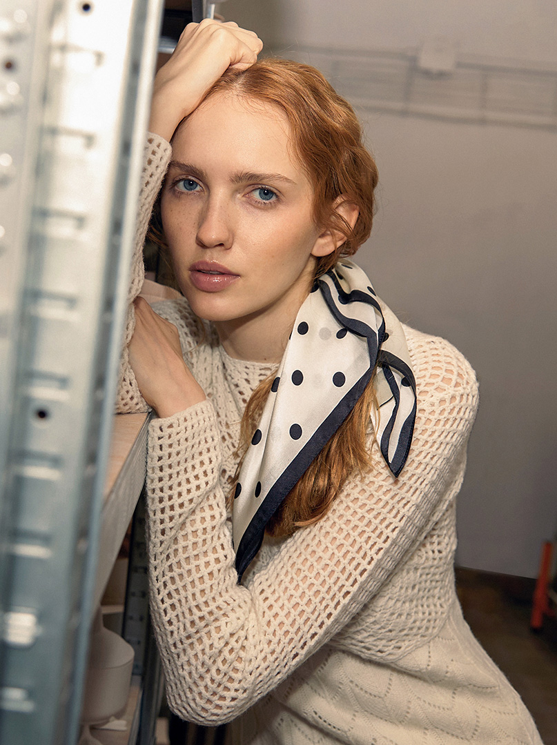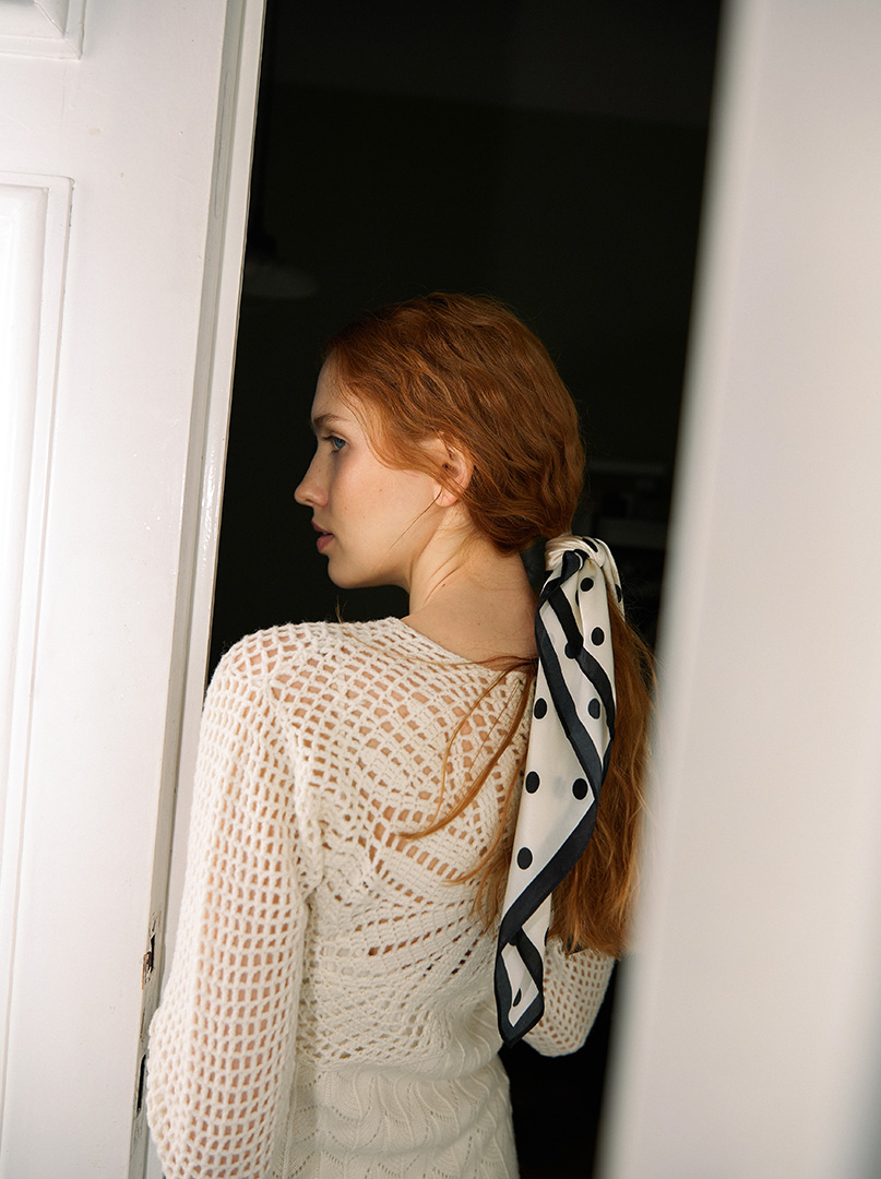 Silk neckerchief with black peas is a classic that turns up any look - from a white shirt to a minimalist trench coat. Made of soft, slightly shiny silk, it fits beautifully around the neck, wrist or as a hair accessory. The sheer cream base and crisp black trim give it an elegant, Parisian feel, while the timeless pea pattern ensures that this silk scarf never goes out of style.