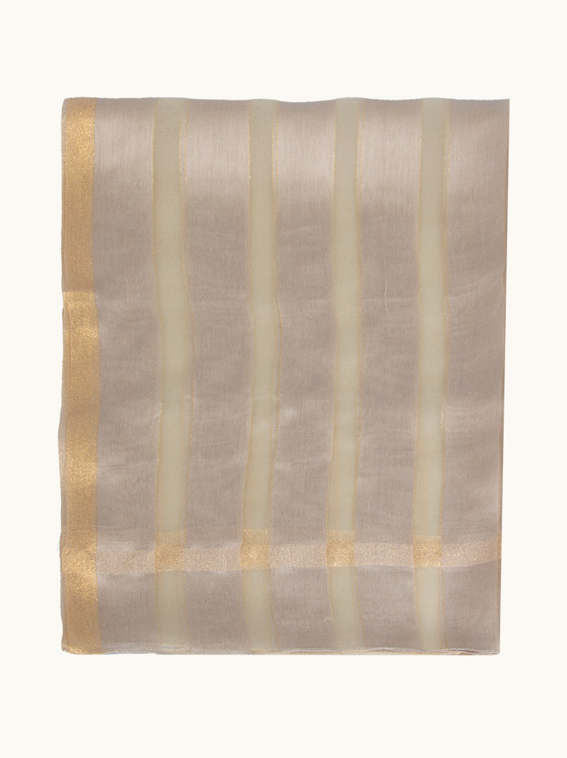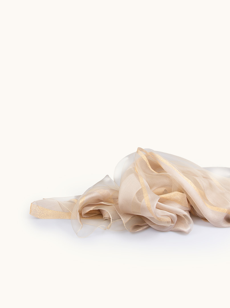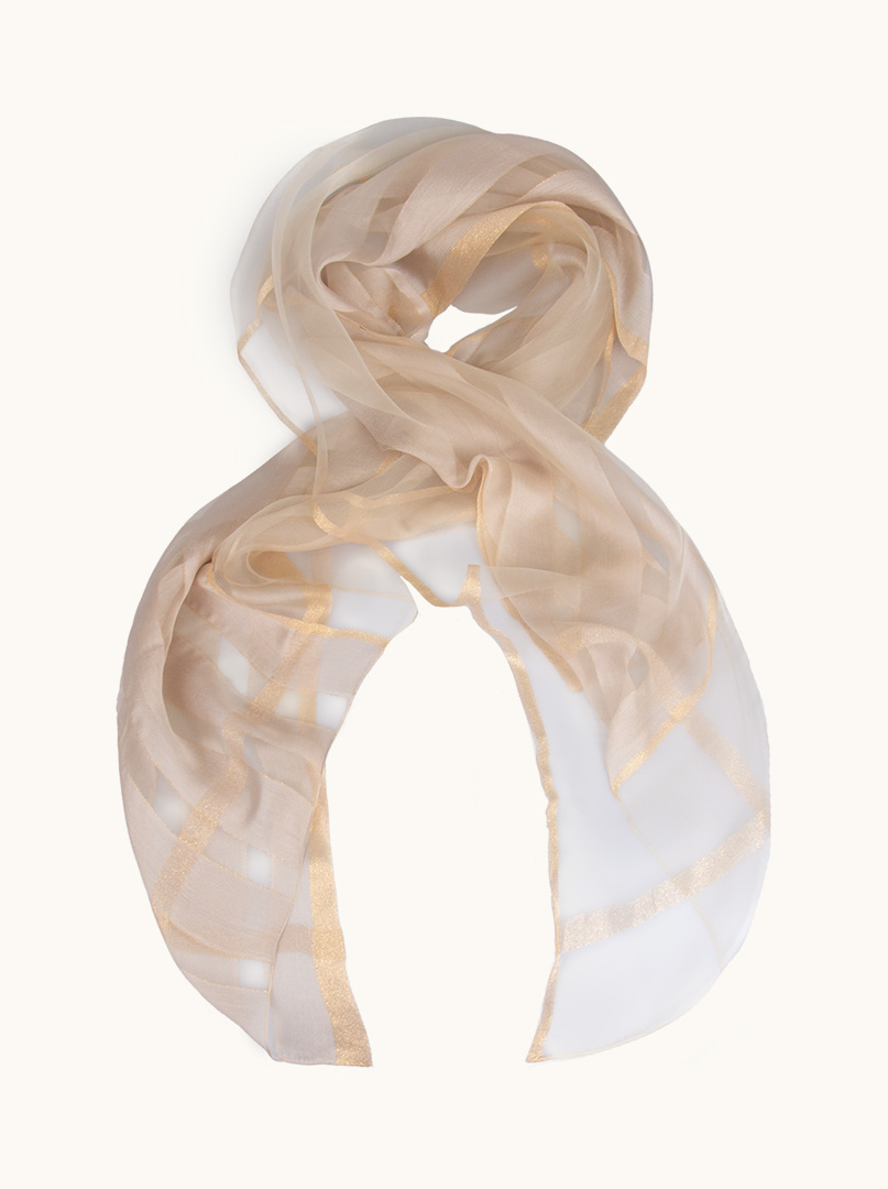 Beige striped evening shawl with gold thread 80 cm x 190 cm