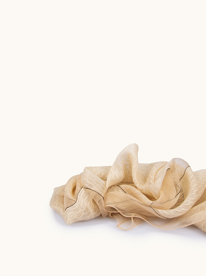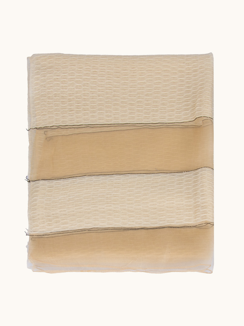 Beige striped shawl decorated with black beads 65 cm x 185 cm
