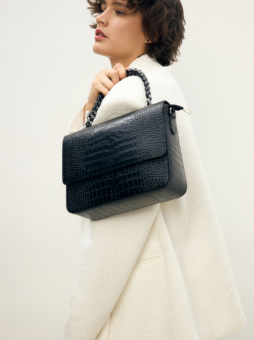 Softly resting on your shoulder yet making a statement. Lightweight, comfortable, but full of character — clean lines, strong accents, zero compromises. Perfect for women who live life on the move but never sacrifice elegance. A handbag that keeps up with you — effortlessly stylish, endlessly practical.