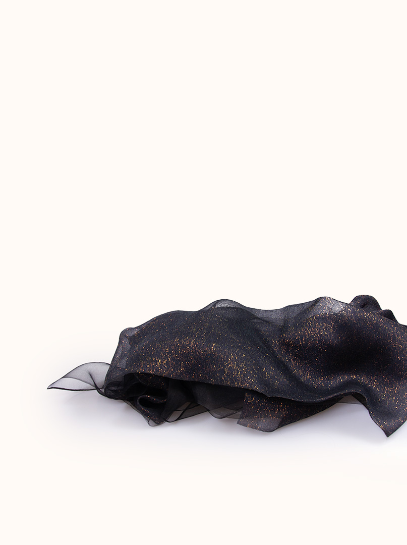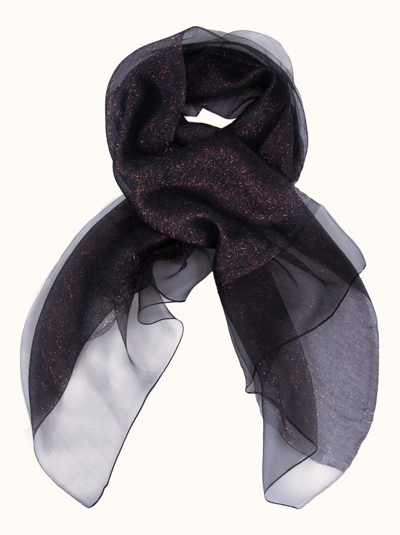 Black formal scarf with gold thread, 65 cm x 185 cm
