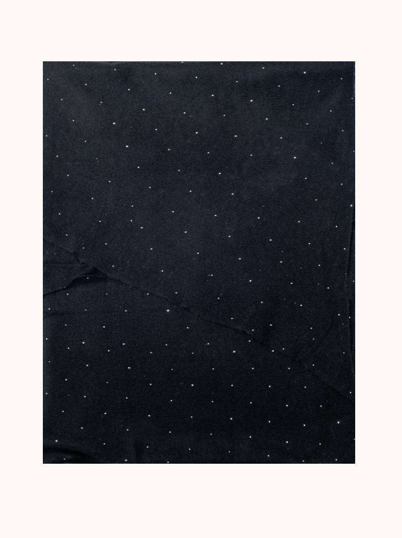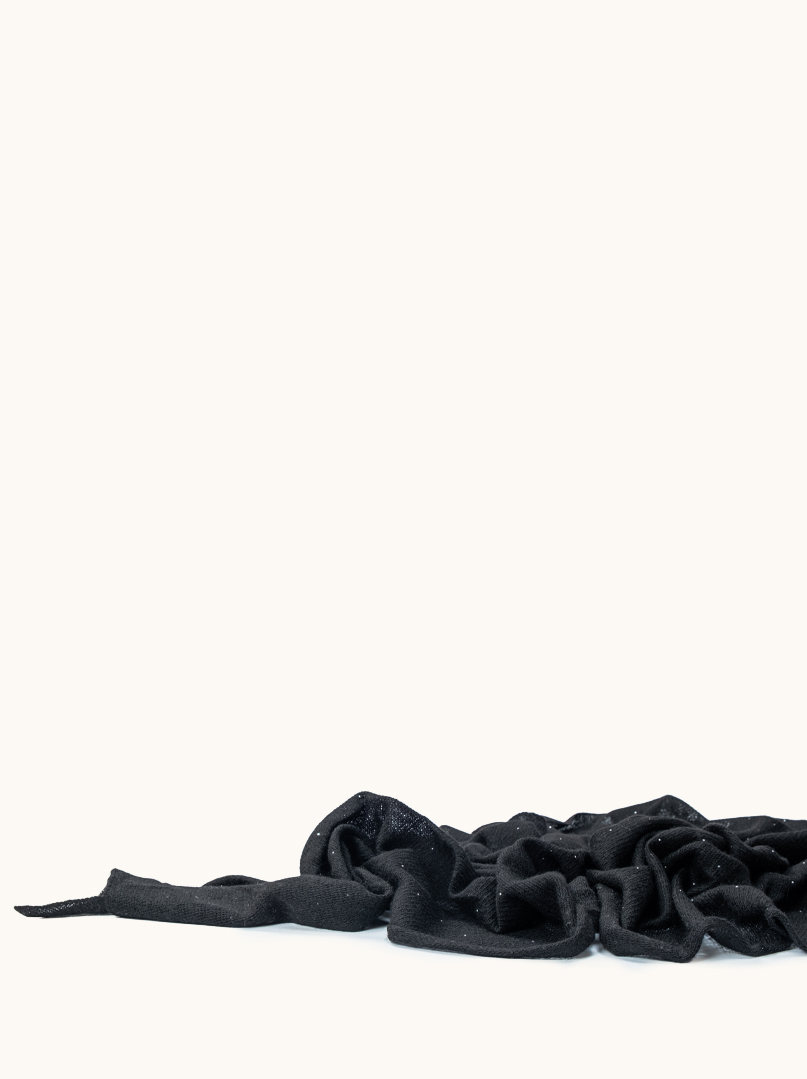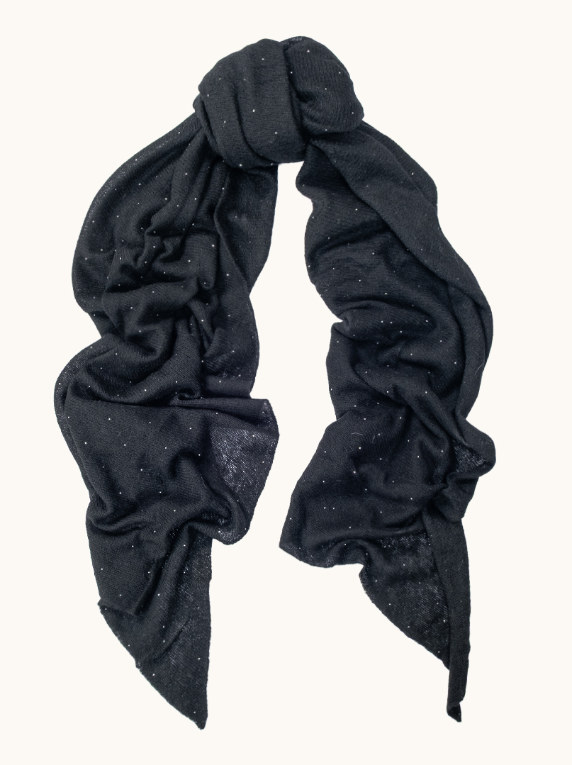 Elegant cashmere shawl in deep black color, subtly illuminated with a fine, delicate shine. Minimalist, but with character - ideal for women who appreciate luxury in a discreet form. Soft, lightweight and extremely pleasant to the touch, it wraps perfectly and works well for both everyday and evening outfits.