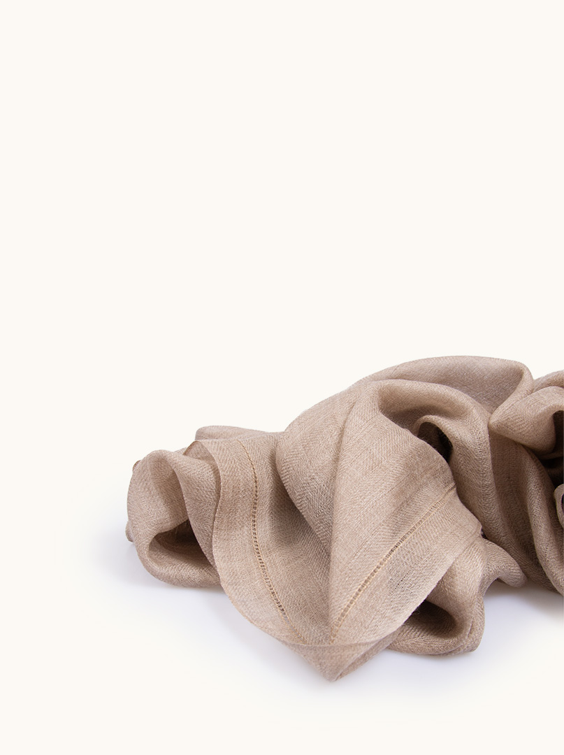 This blend creates scarves with a remarkable texture: lightweight yet enveloping. It’s a fabric that speaks in a whisper — of comfort, femininity, and discreet refinement.