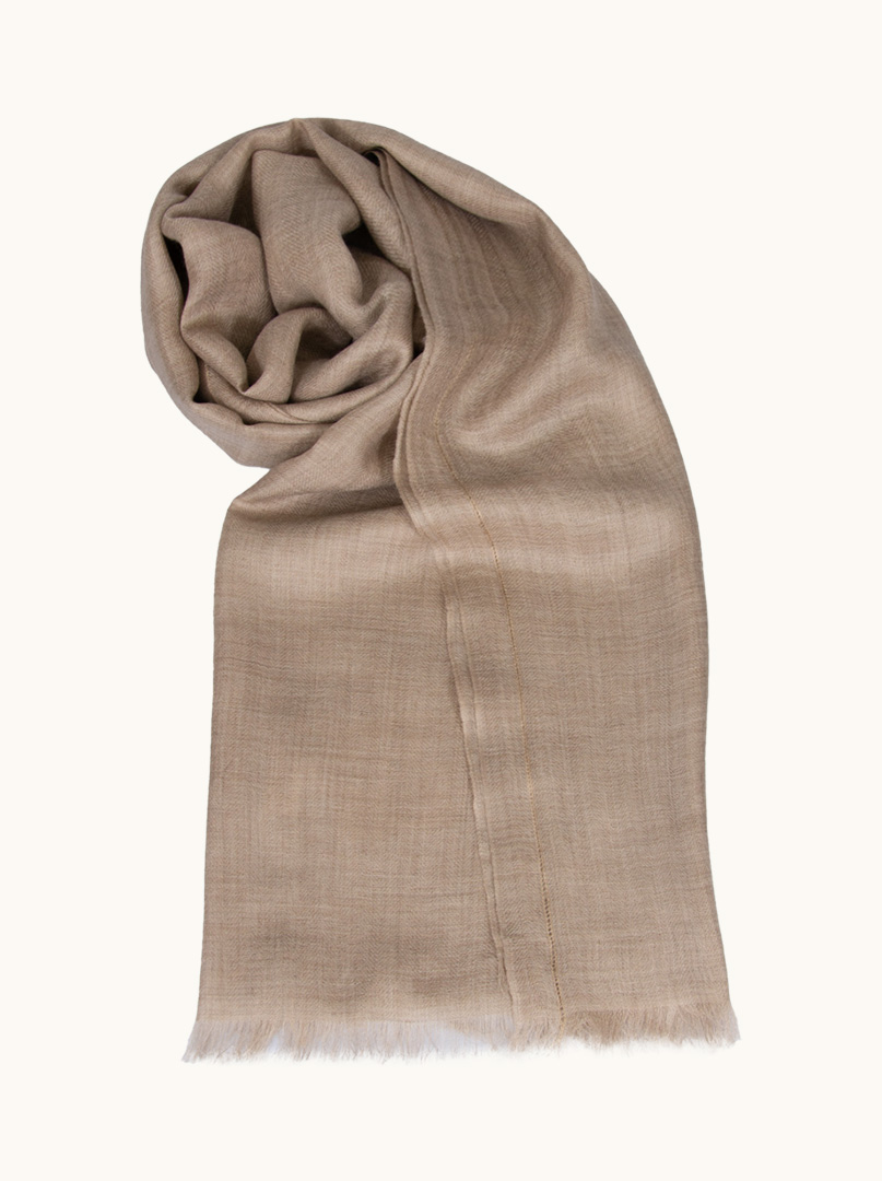 A blend of wool’s warmth and silk’s softness. Wool–silk scarves are light, elegant and beautifully soft, while still providing great insulation. They’re the perfect choice if you want a scarf that’s practical yet distinctly luxurious — a refined accessory with a touch of premium comfort.