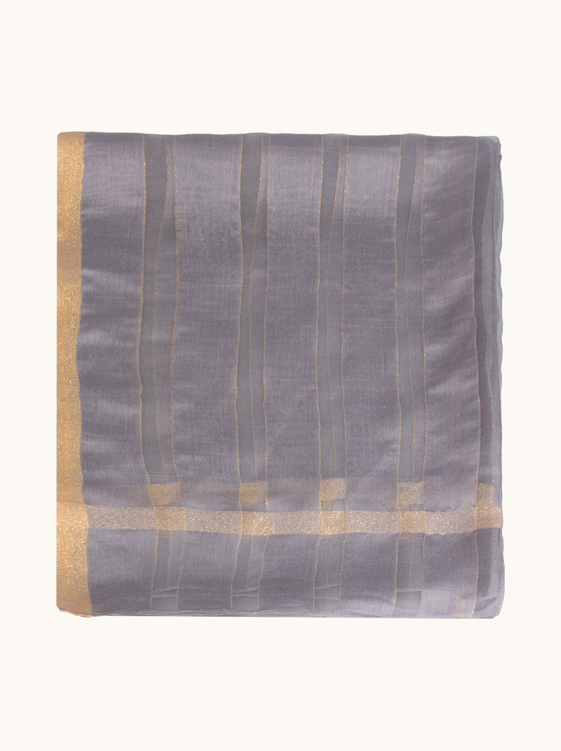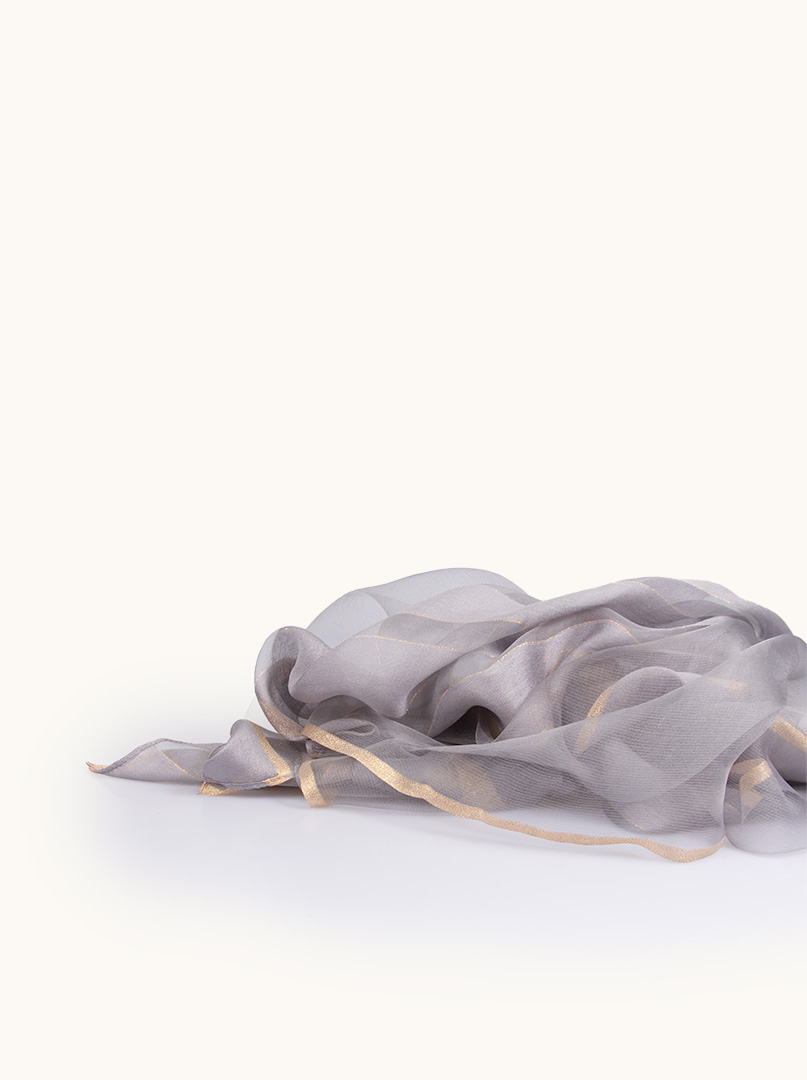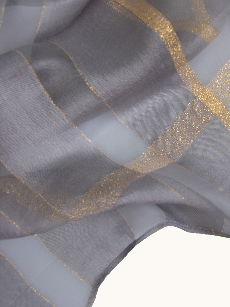 Grey evening shawl with gold decorated stripes 80 cm x 190 cm