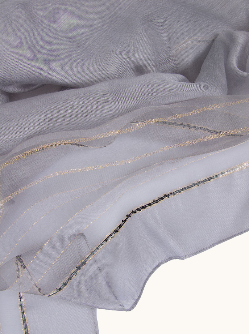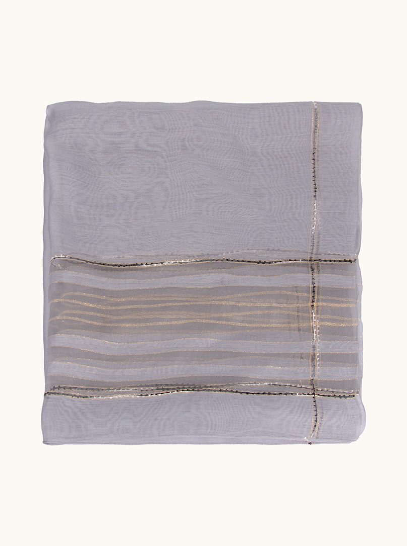 Grey striped evening shawl with gold thread 80 cm x 190 cm