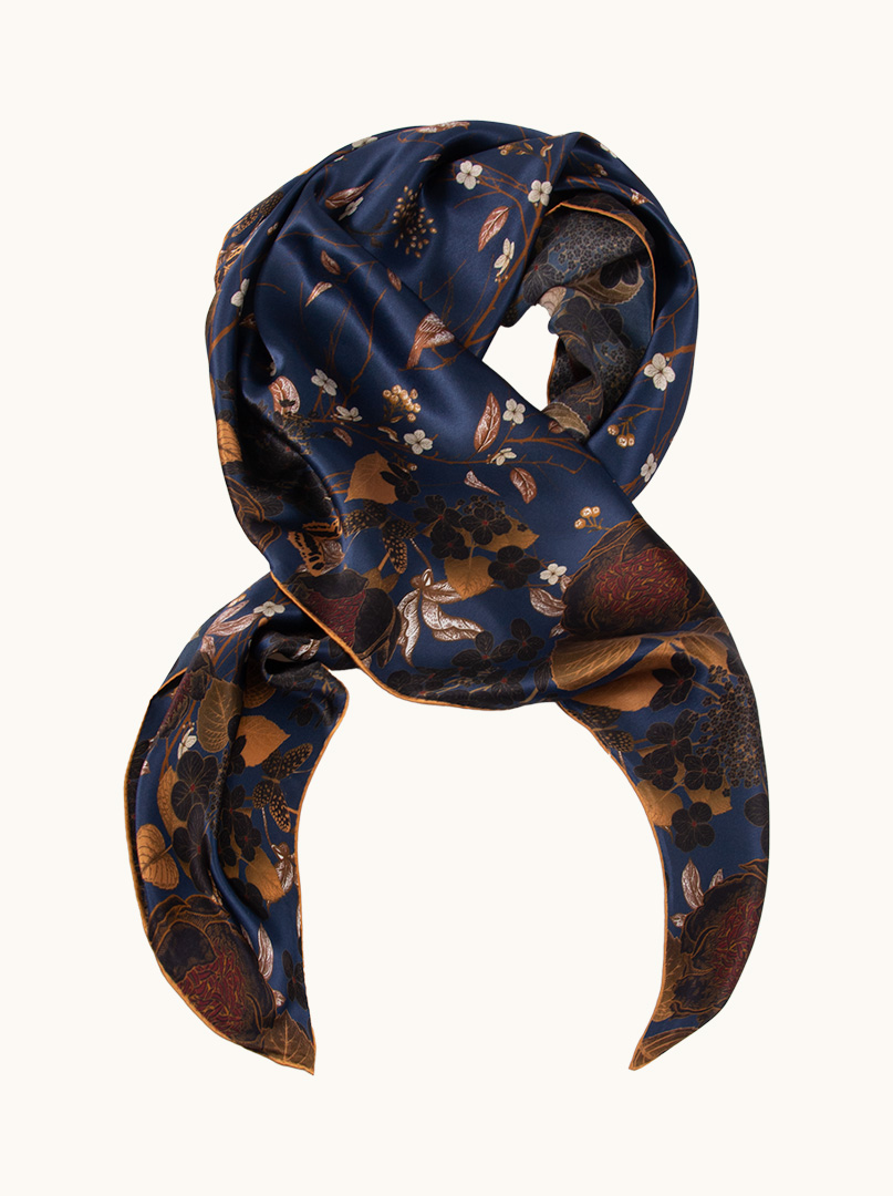 Medium silk scarves have the power to shift proportions and transform the character of an entire outfit — from casual to evening wear. Add one to a simple shirt or a little black dress, and suddenly the whole look gains an artistic edge.