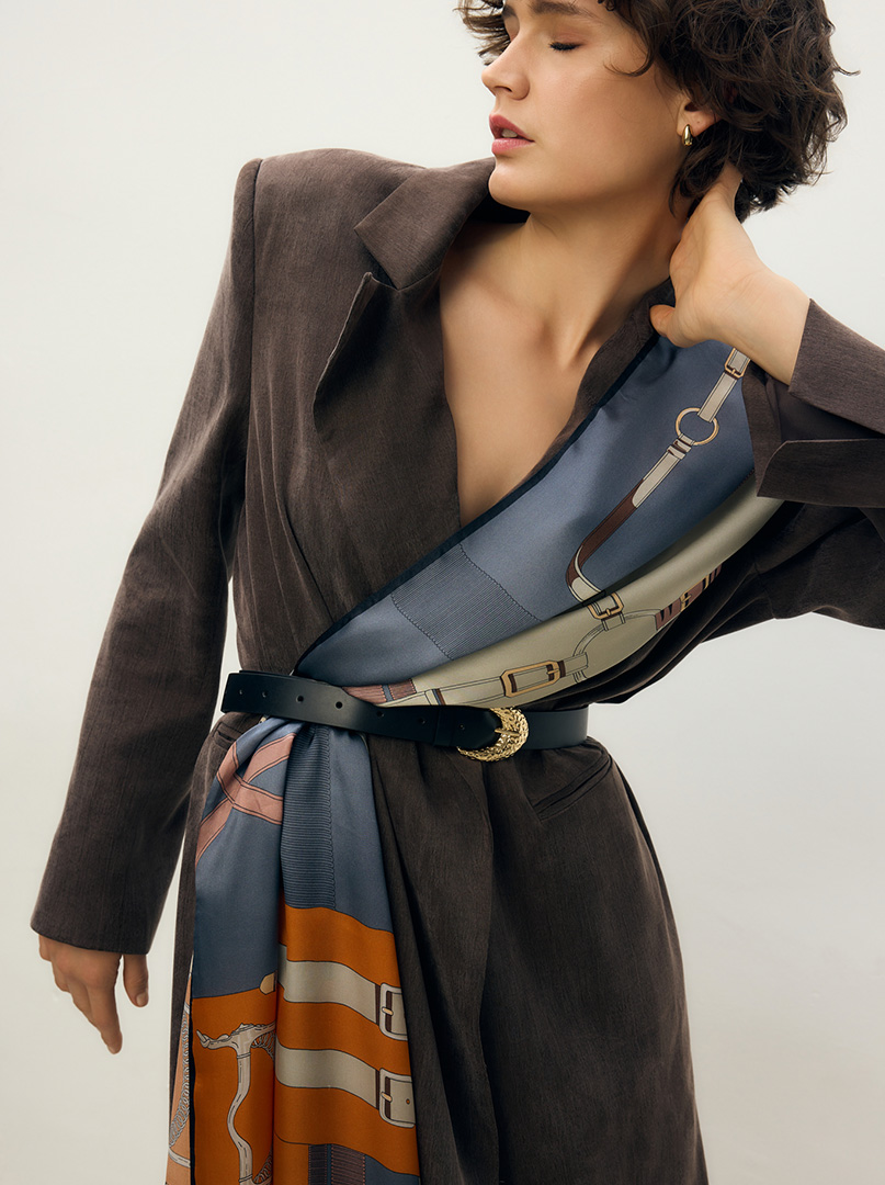 There’s no format more iconic than the 90×90 cm scarf — these pieces of fabric have defined Parisian chic and Italian ease for decades. With a single move, you can turn one into a top, a turban, a bag accessory, or tie it effortlessly around your neck.