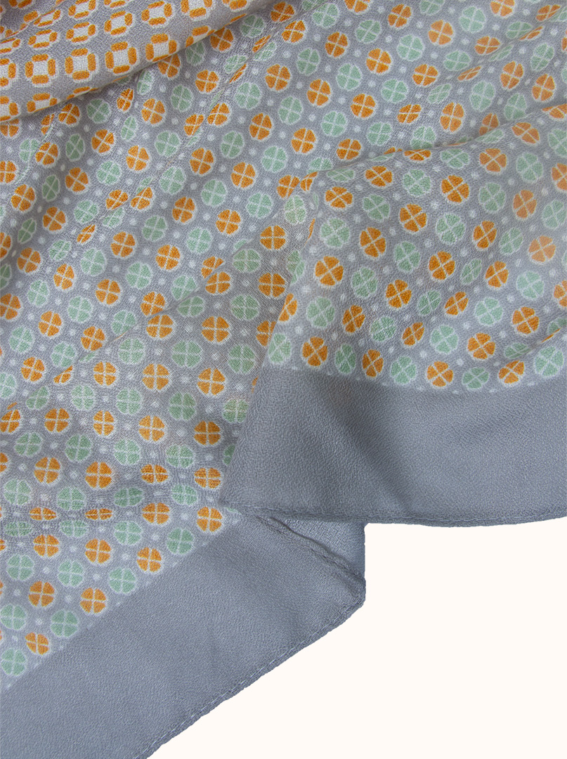 Shawls in the 110×110 cm size add a touch of effortless lightness to any outfit. Perfect for a nonchalant knot around the neck or as a chic accent on your handbag. Small format, big impact.