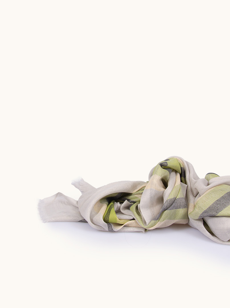 Lightweight gray-green striped shawl 70 cm x 180 cm