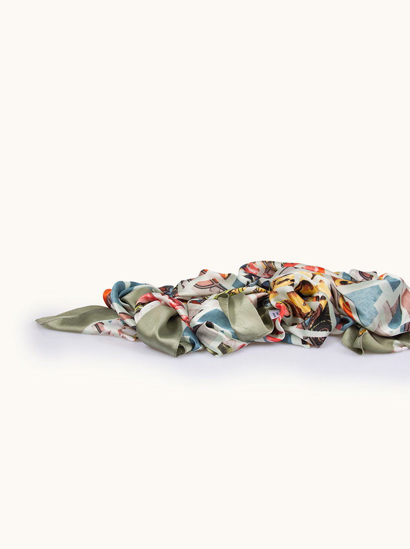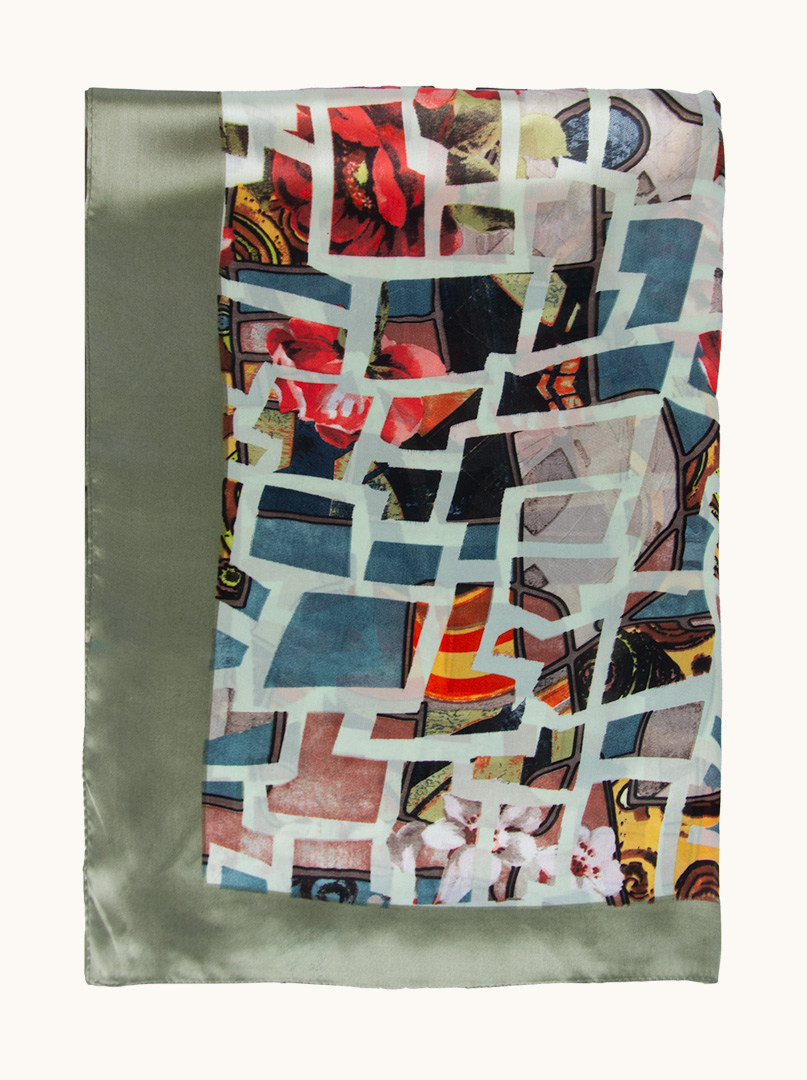Lightweight shawl in geometric patterns with a celadon border 85 cm x 175 cm