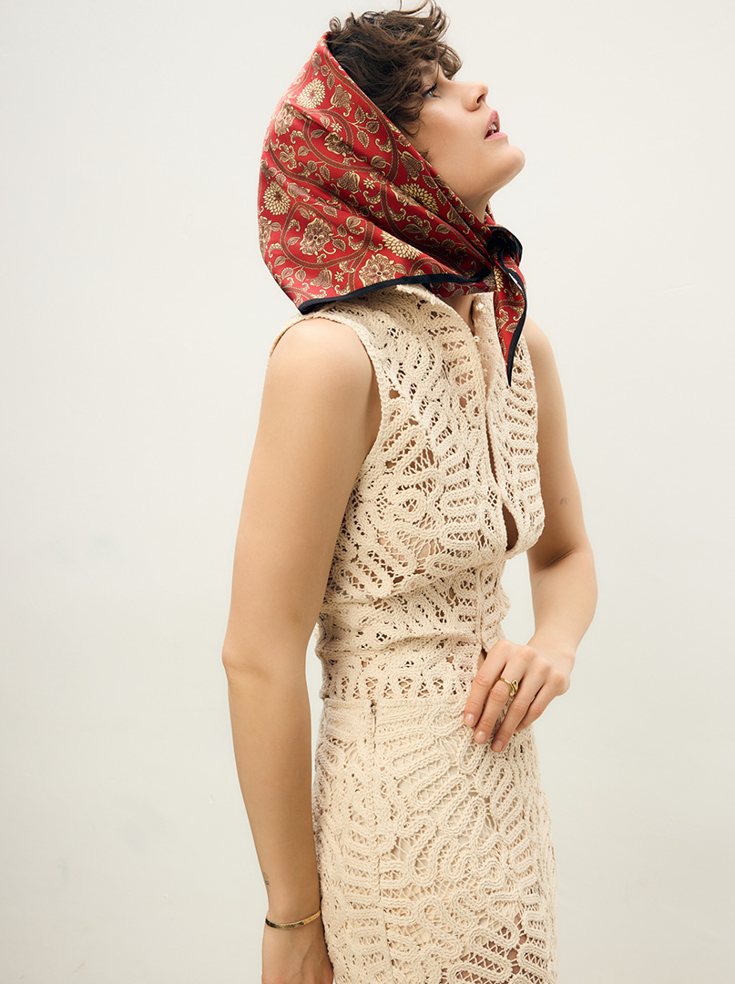 Silk scarf with white flower motif  70 cm x 70 cm
