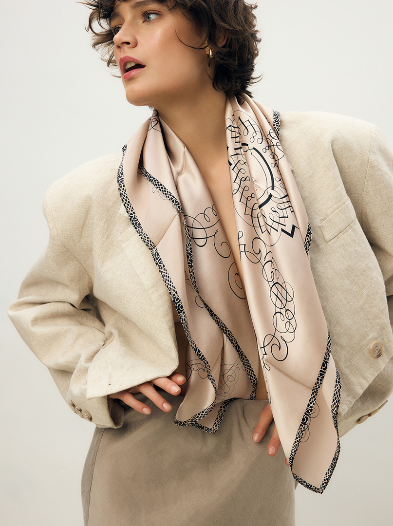 Zapewnij sobie elegancję i styl dzięki jedwabnej apaszce w brązowym odcieniu. Nasza apaszka zachwyca swoimi wzorami, które nadają jej wyjątkowego charakteru. Wykonana z najwyższej jakości jedwabiu, jest nie tylko niezwykle miękka i przyjemna w dotyku, ale także doskonale się prezentuje. Geometryczne motywy dodają apaszce nowoczesnego i stylowego wyglądu, który pasuje zarówno do codziennych, jak i bardziej formalnych stylizacji. Ponadto, jej uniwersalny rozmiar sprawia, że można ją nosić na wiele różnych sposobów. Dzięki naszej apaszce, zapewnisz swojej stylizacji wyrazisty akcent.