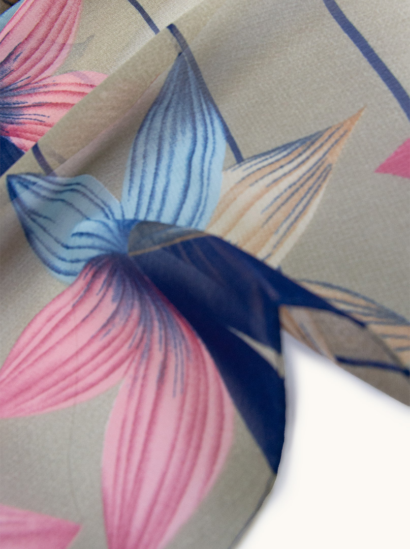 This blend creates scarves with a remarkable texture: lightweight yet enveloping. It’s a fabric that speaks in a whisper — of comfort, femininity, and discreet refinement.