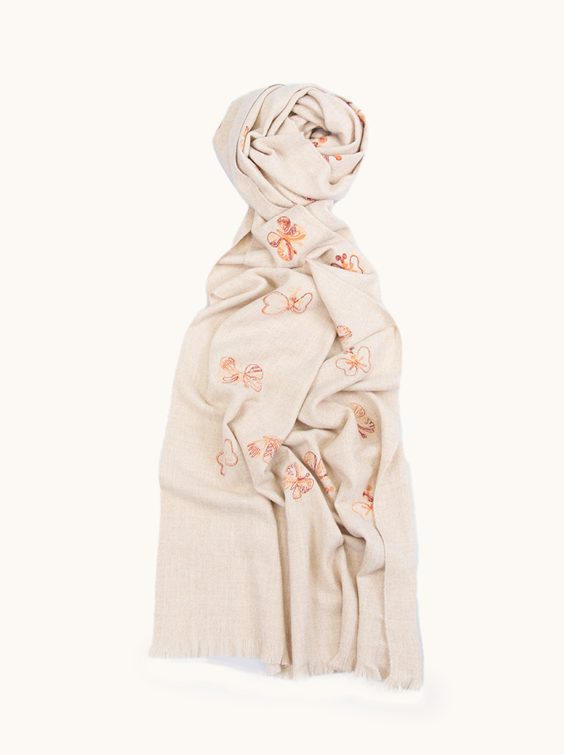 This blend creates scarves with a remarkable texture: lightweight yet enveloping. It’s a fabric that speaks in a whisper — of comfort, femininity, and discreet refinement.