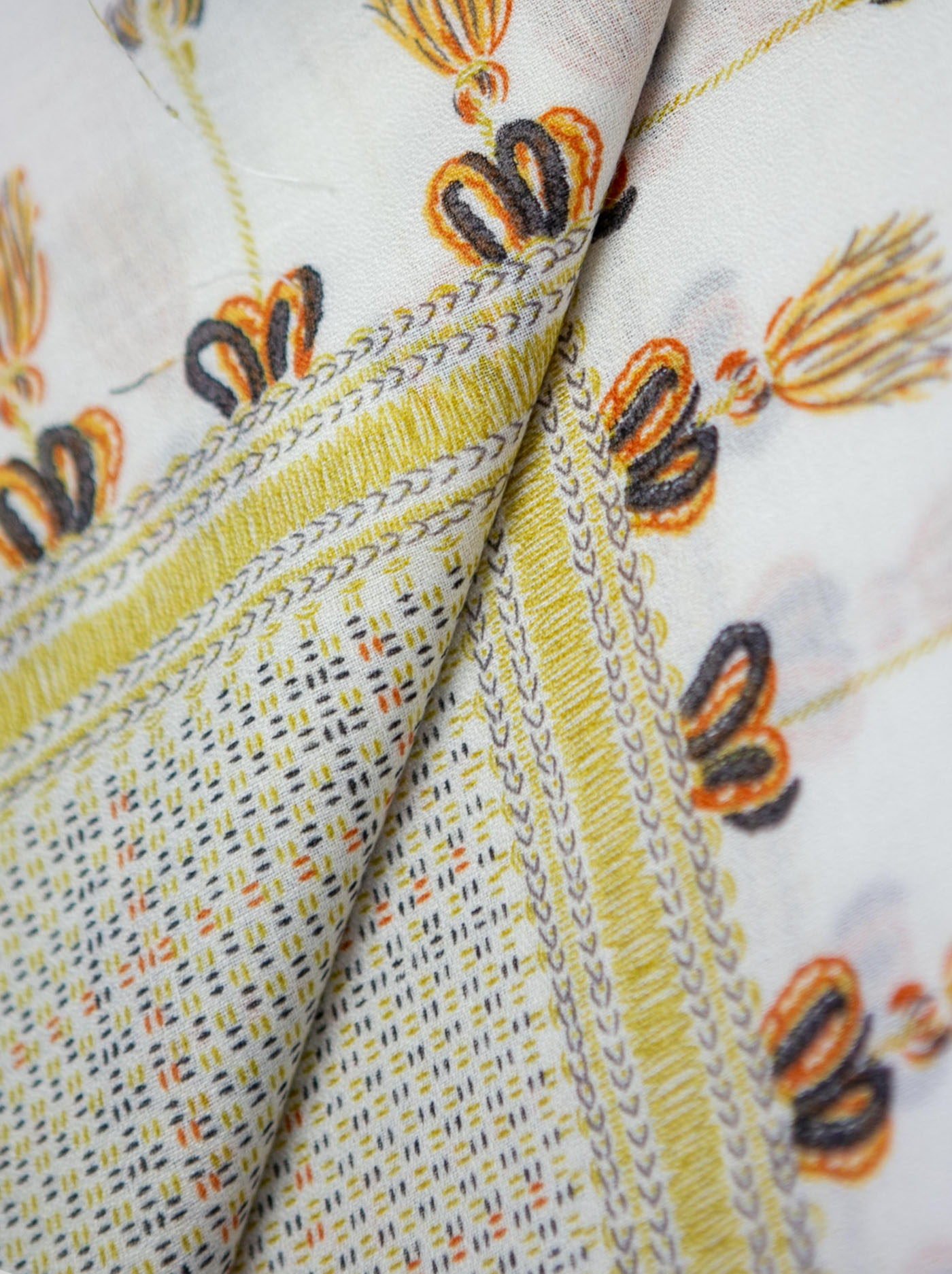 The blend of silk and wool tells a story of harmony between texture and light. These shawls transition seamlessly between seasons, offering a refined elegance that makes an impact without ever raising its voice.