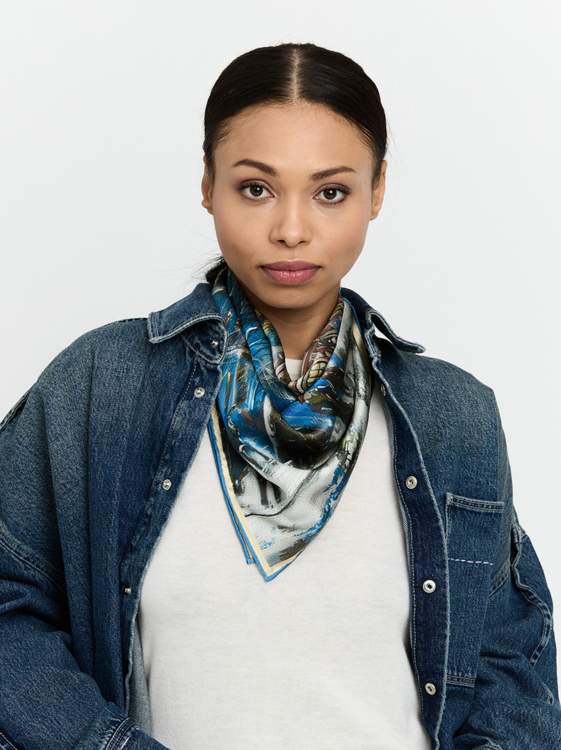 Medium silk scarves have the power to shift proportions and transform the character of an entire outfit — from casual to evening wear. Add one to a simple shirt or a little black dress, and suddenly the whole look gains an artistic edge.