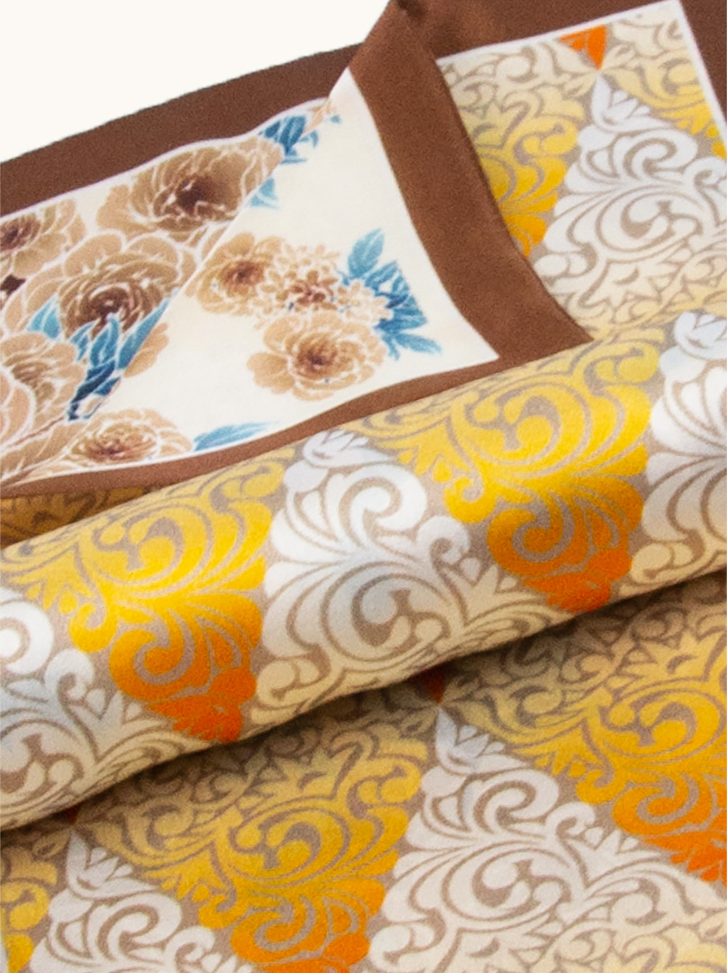 Silk Scarves 70 × 70 cm give you plenty of room for styling creativity. The new designs blend timeless elegance with current trends — featuring geometric prints, subtle florals and modern color compositions that instantly elevate any look.