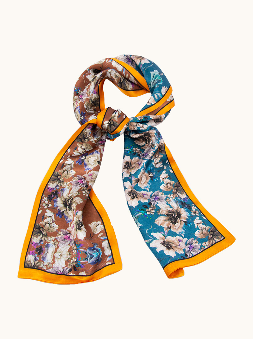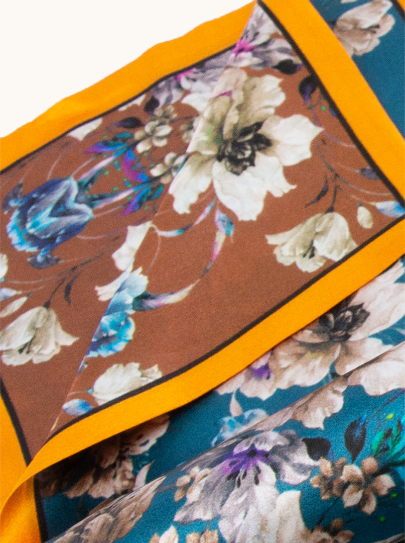 Scarves 110 × 110 cm are a handy, highly versatile size — perfect for tying around the neck, styling under a blazer, pairing with a coat or even a leather jacket. They add color, character and a refined touch without overwhelming the silhouette.