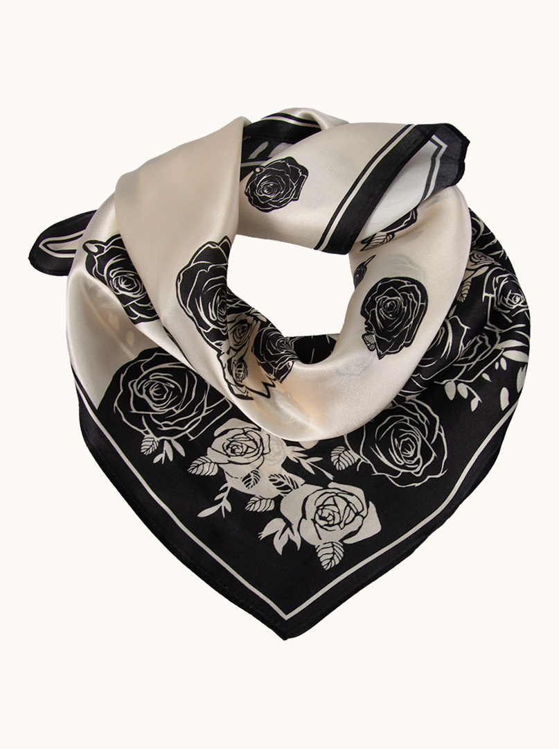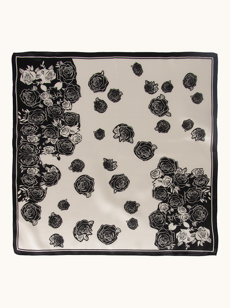 Ta apaszka jedwabna w szachownicę z motywem róż to połączenie elegancji z subtelnym urokiem kwiatów. Kontrastujące ze sobą czarne i białe kwadraty tworzą dynamiczny charakter, podczas gdy motyw róż dodaje delikatności i kobiecego uroku. Jedwabna tkanina zapewnia luksusowy wygląd oraz miękkości w dotyku, co sprawia, że noszenie jej jest czystą przyjemnością Ta apaszka niewątpliwie sprawdzi się jako wyrazista i elegancka ozdoba Twojej stylizacji.