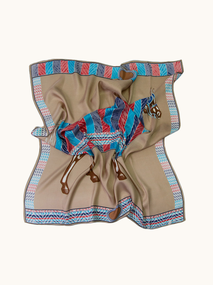 Scarves in the 65 × 65 cm size are made for everyday wear. This collection highlights the season’s most fashionable colors — elegant beiges, warm browns, deep burgundy tones, and rich navy — paired with new, refined prints that fit seamlessly into any wardrobe.