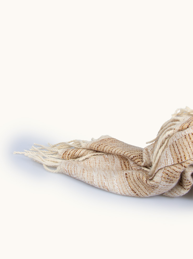 This blend creates scarves with a remarkable texture: lightweight yet enveloping. It’s a fabric that speaks in a whisper — of comfort, femininity, and discreet refinement.
