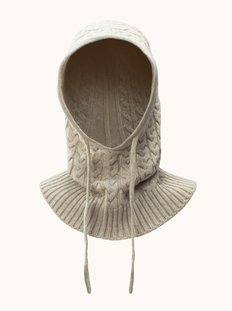 Wool hoodie with braided pattern and binding beige PREMIUM