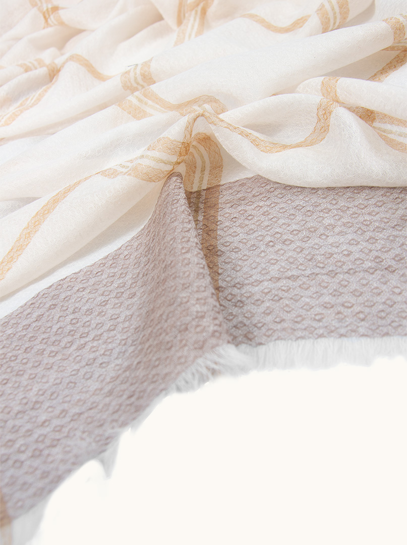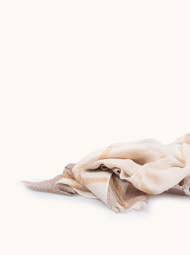 This blend creates scarves with a remarkable texture: lightweight yet enveloping. It’s a fabric that speaks in a whisper — of comfort, femininity, and discreet refinement.