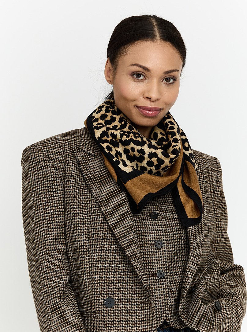Scarves 53 × 53 cm are the perfect choice when you want a small yet striking accent. The new designs — inspired by current trends, from delicate prints to bold graphic motifs — beautifully frame the face and add character to any outfit.
