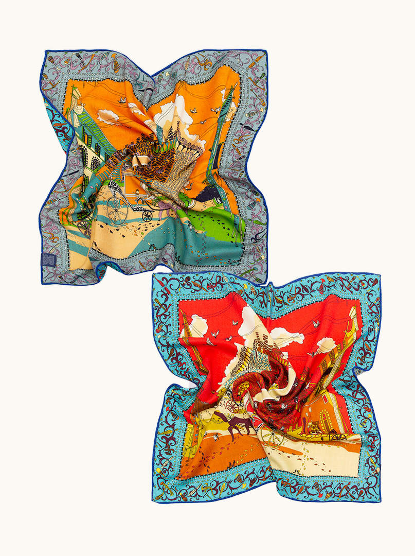 There’s no format more iconic than the 90×90 cm scarf — these pieces of fabric have defined Parisian chic and Italian ease for decades. With a single move, you can turn one into a top, a turban, a bag accessory, or tie it effortlessly around your neck.