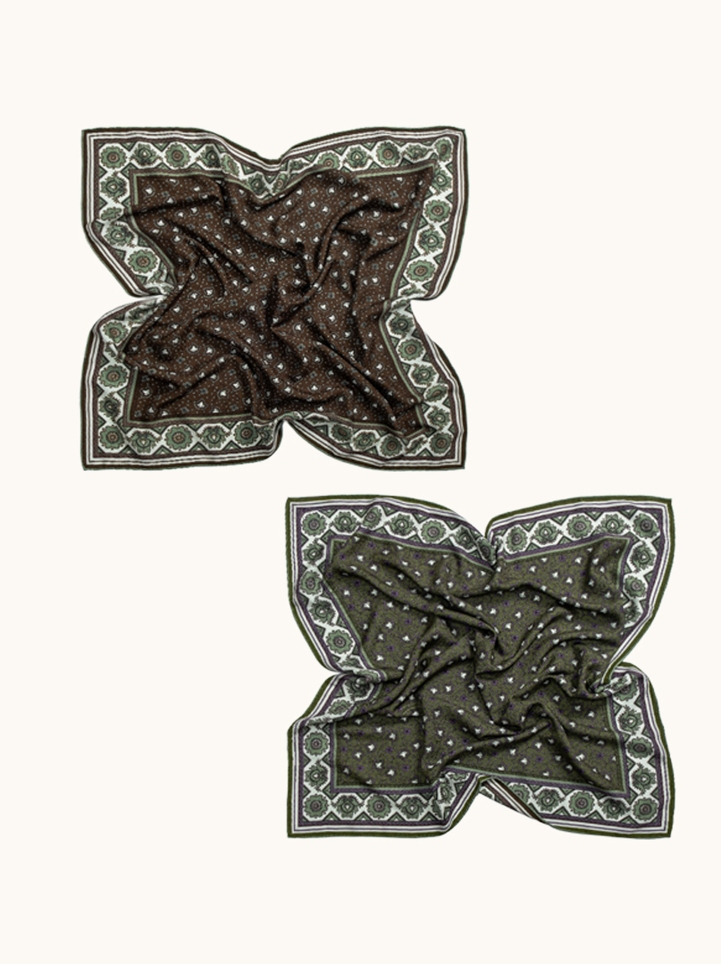 Apaszki 53 × 53 cm z kolekcji Premium to małe, luksusowe akcenty o mocy wielkich stylizacji — lekkie, zmysłowe i stworzone jakby prosto na backstage’u „Vogue”. Dodają lookowi wyrafinowanego rytmu i modowej pewności siebie, niezależnie od tego, jak je zawiążesz.
