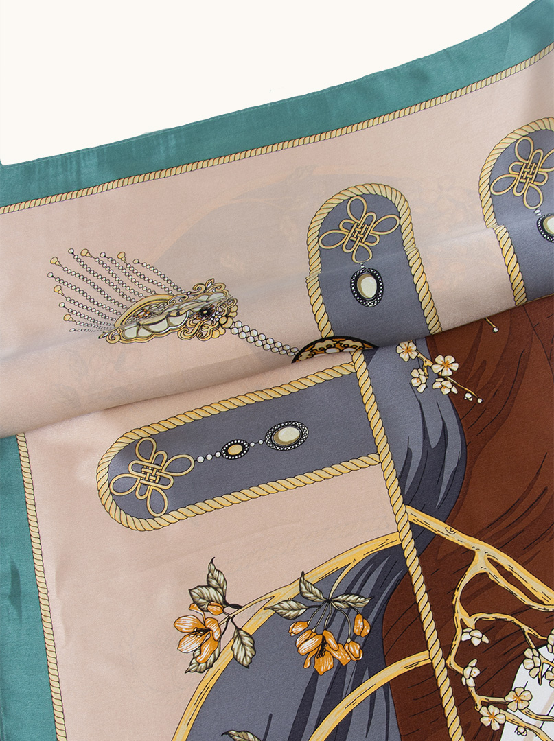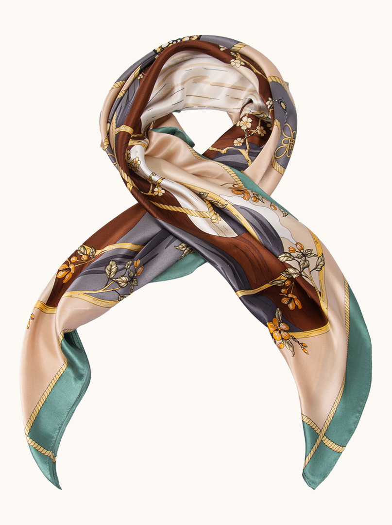 Apaszka jedwabna w beżowym kolorze z motywem kwiatowym to wyjątkowy dodatek, który zachwyca elegancją i subtelnością. Wykonana z najwyższej jakości jedwabiu, posiada delikatną i luksusową teksturę, która jest przyjemna w dotyku oraz nadaje apaszce wyjątkowego blasku. Motyw kwiatowy w beżowych odcieniach nadaje apaszce niezwykłej harmonii kolorystycznej, tworząc efektowny kontrast między ciepłymi tonami pomarańczowymi a stonowanymi odcieniami grafitu. Kwiaty dodają apaszce subtelności, kobiecości oraz romantycznego uroku.