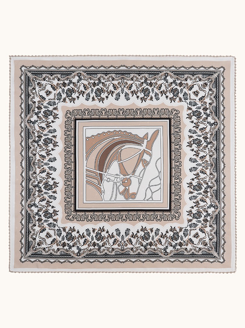 Apaszka jedwabna beżowa z ornamentem 53x53 cm