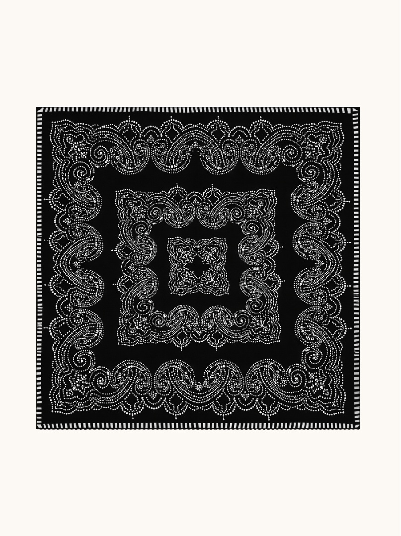 Połączenie wełny i jedwabiu to opowieść o harmonii między fakturą a światłem. Te chusty płynnie przechodzą między sezonami, tworząc wysmakowaną elegancję, która nie potrzebuje krzyku, by robić wrażenie .