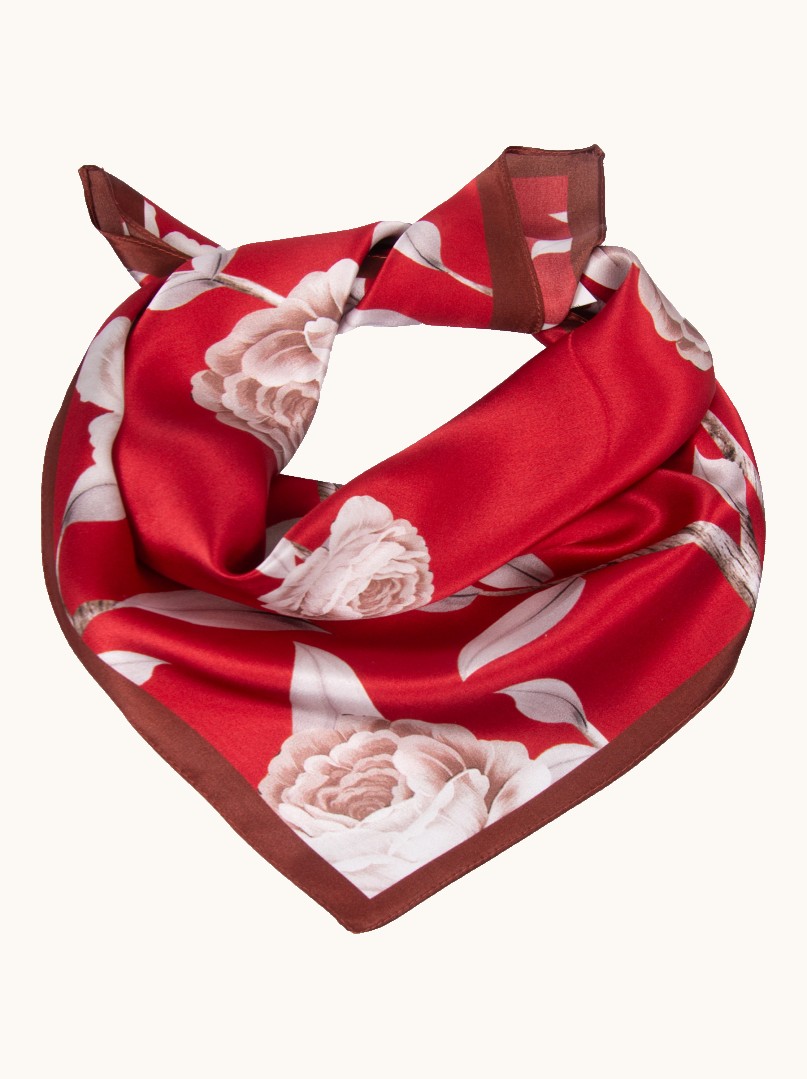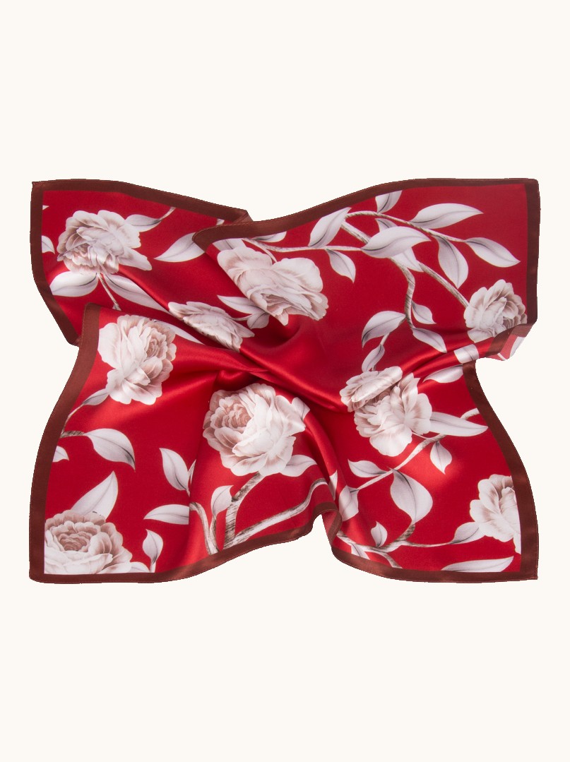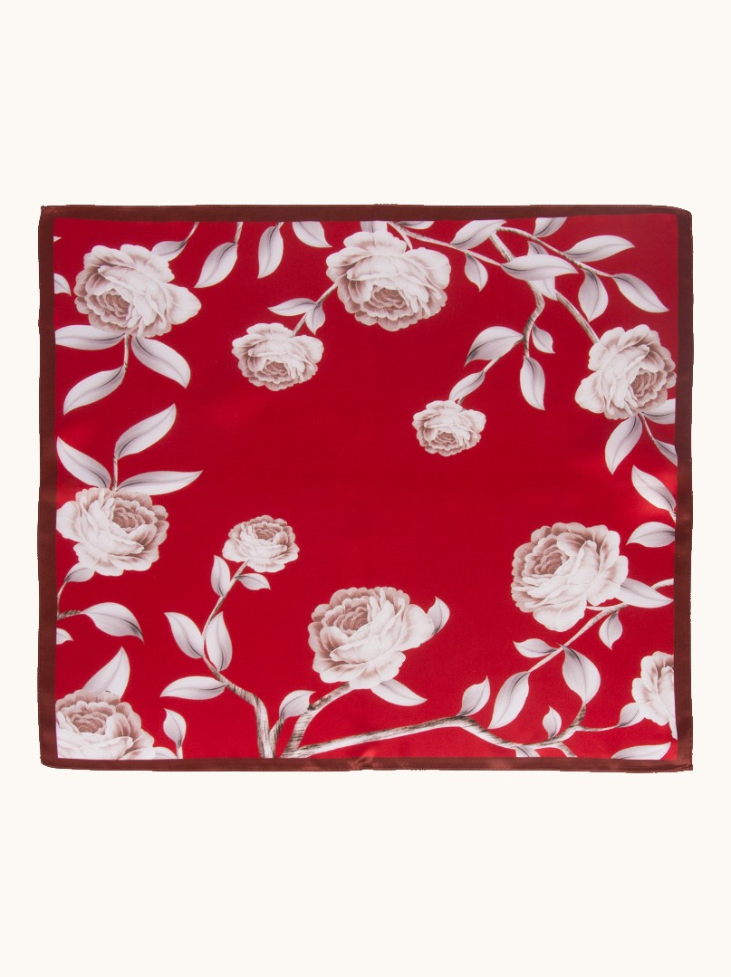 Apaszka jedwabna czerwona w kwiaty 53x53 cm