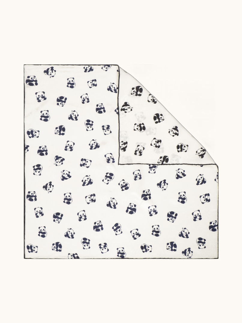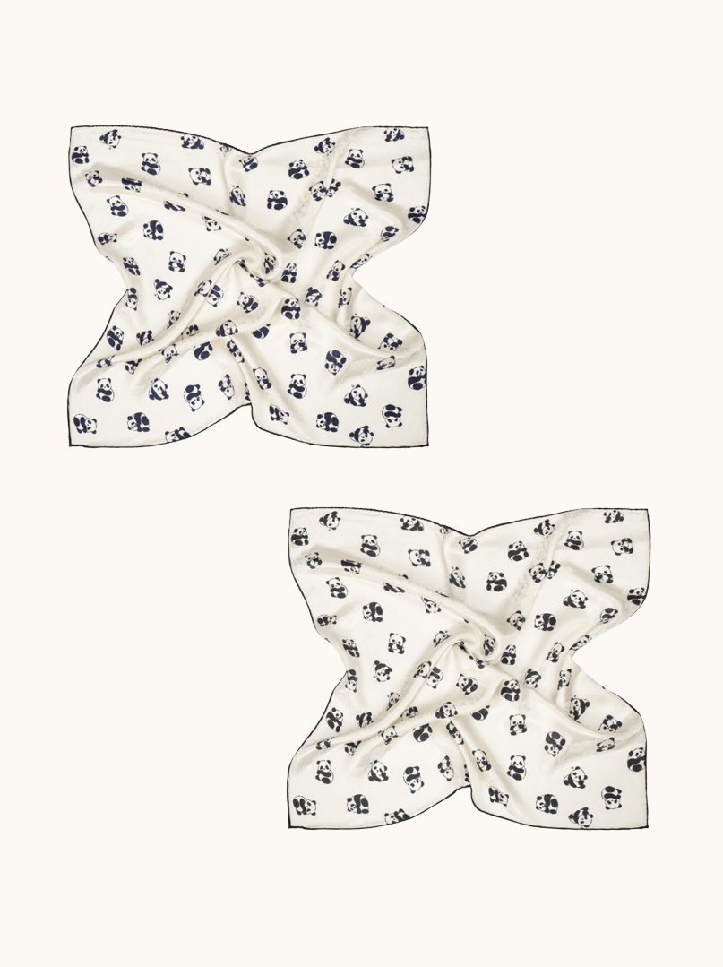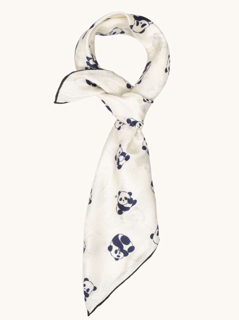 Ta jedwabna apaszka łączy klasyczną elegancję z subtelnym, uroczym motywem pand, który nadaje jej lekkości i świeżości. Wykonana z naturalnego jedwabiu, jest miękka, przyjemna dla skóry i pięknie się układa.