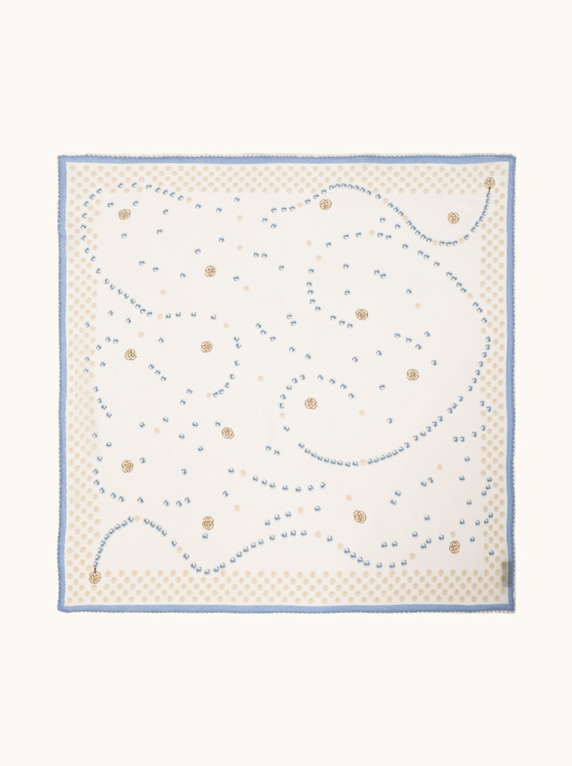 Ta jedwabna apaszka zachwyca subtelnością i lekkością formy. Wykonana z naturalnego jedwabiu, została wykończona delikatną koronką, która nadaje jej romantyczny, elegancki charakter.