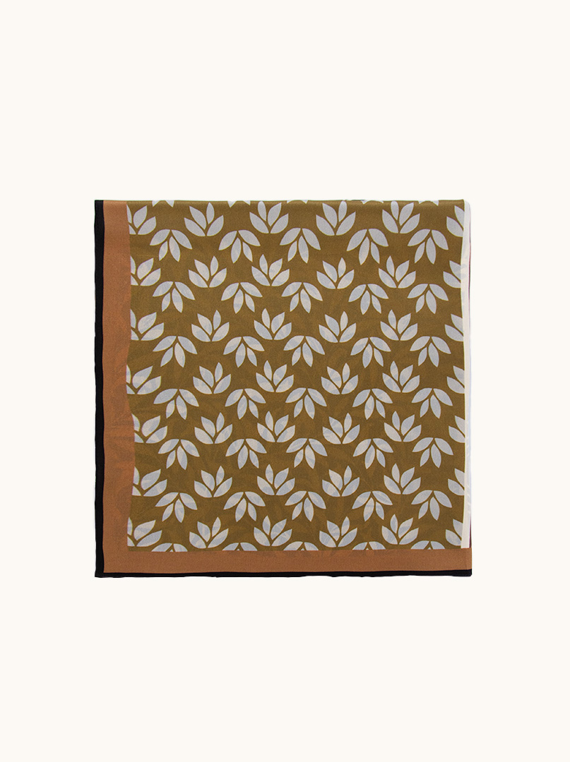 Naturalny jedwab sprawia, że materiał jest lekki, miękki i przyjemny w dotyku. Apaszka pięknie układa się podczas noszenia,delikatnie podkreślając styl całej stylizacji.