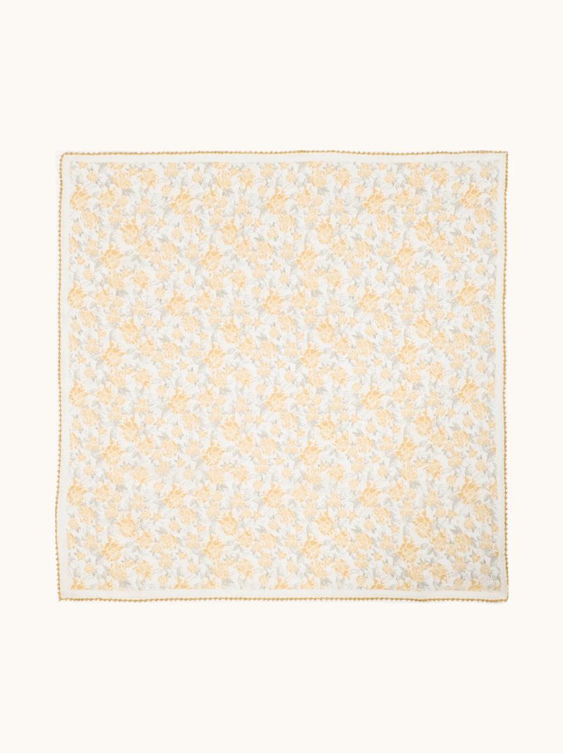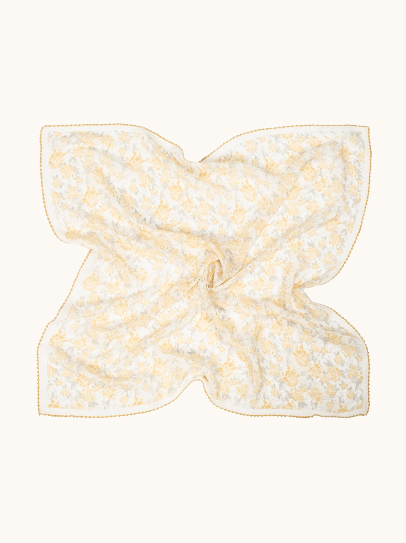 Ta jedwabna apaszka zachwyca subtelnością i lekkością formy. Wykonana z naturalnego jedwabiu, została wykończona delikatną koronką, która nadaje jej romantyczny, elegancki charakter. Jasna, świetlista kolorystyka z drobnym motywem kwiatowym pięknie rozświetla stylizację i dodaje jej miękkości. To idealny dodatek dla kobiet, które cenią dyskretny luksus i ponadczasową kobiecość.