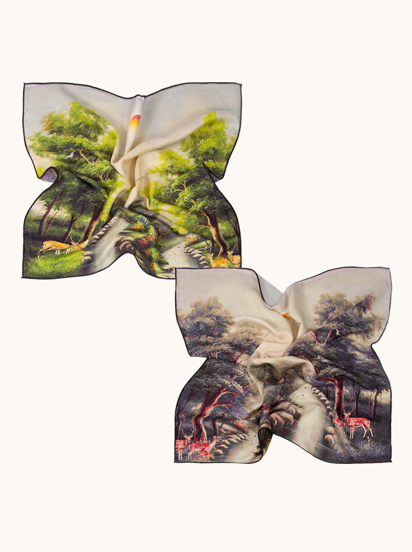 Połączenie wełny i jedwabiu to opowieść o harmonii między fakturą a światłem. Te chusty płynnie przechodzą między sezonami, tworząc wysmakowaną elegancję, która nie potrzebuje krzyku, by robić wrażenie .