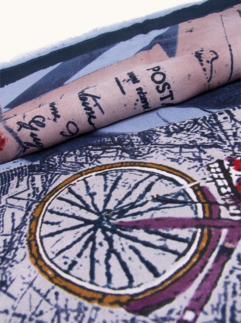 Ekskluzywna chusta z wiskozy niebieska we wzór z rowerem, wykonana z wysokiej jakości wiskozy, wykończona frędzlami. Sprawdzi się idealnie, jako uzupełnienie codziennej stylizacji, ale również do eleganckich zestawów np. w połączeniu z białą koszulą. Zapewni ona oryginalny wygląd i nada wyjątkowego charakteru.
