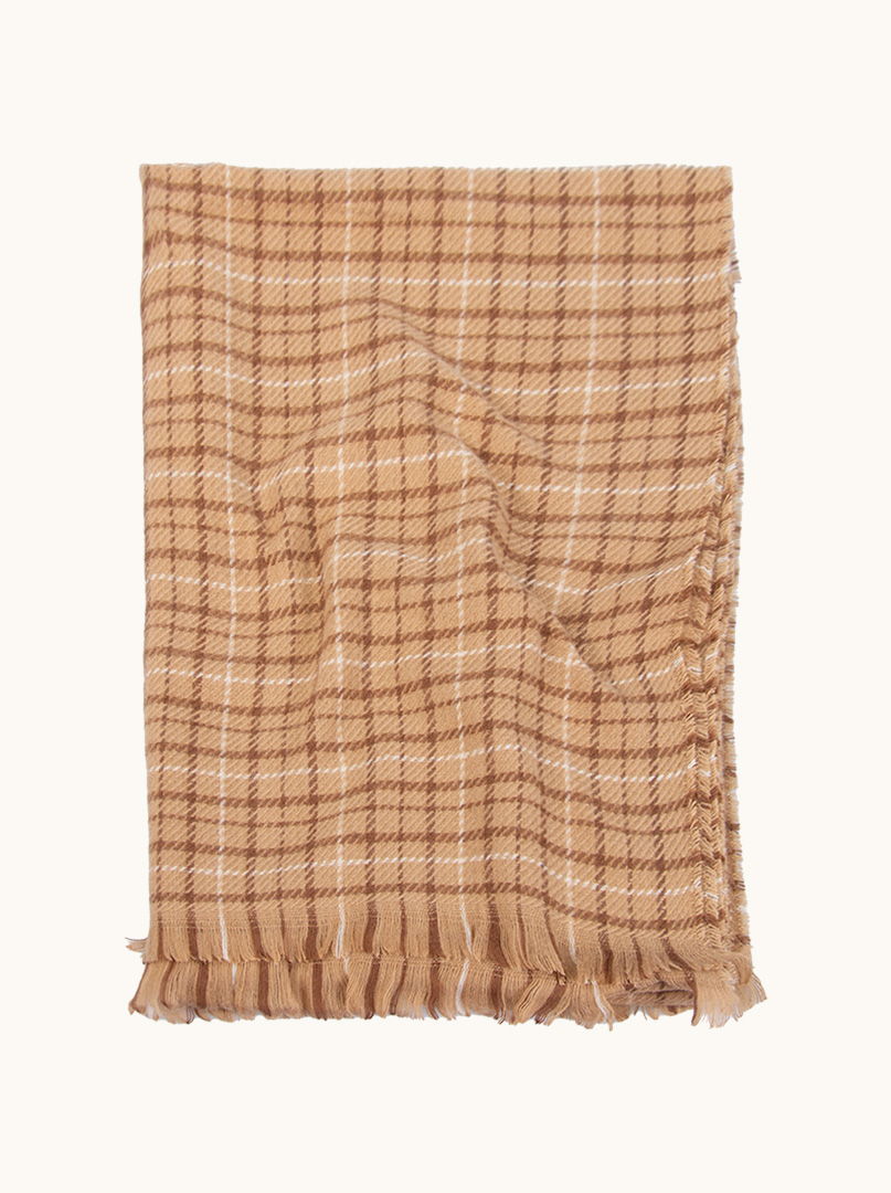 Ciepły szal z wełną w kratę 70 cm x 195 cm