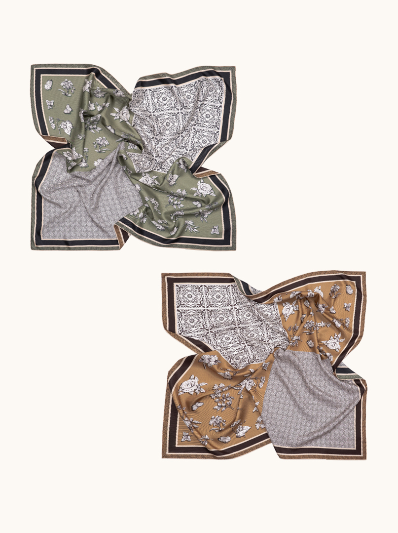 Apaszki 53 × 53 cm z kolekcji Premium to małe, luksusowe akcenty o mocy wielkich stylizacji — lekkie, zmysłowe i stworzone jakby prosto na backstage’u „Vogue”. Dodają lookowi wyrafinowanego rytmu i modowej pewności siebie, niezależnie od tego, jak je zawiążesz.
