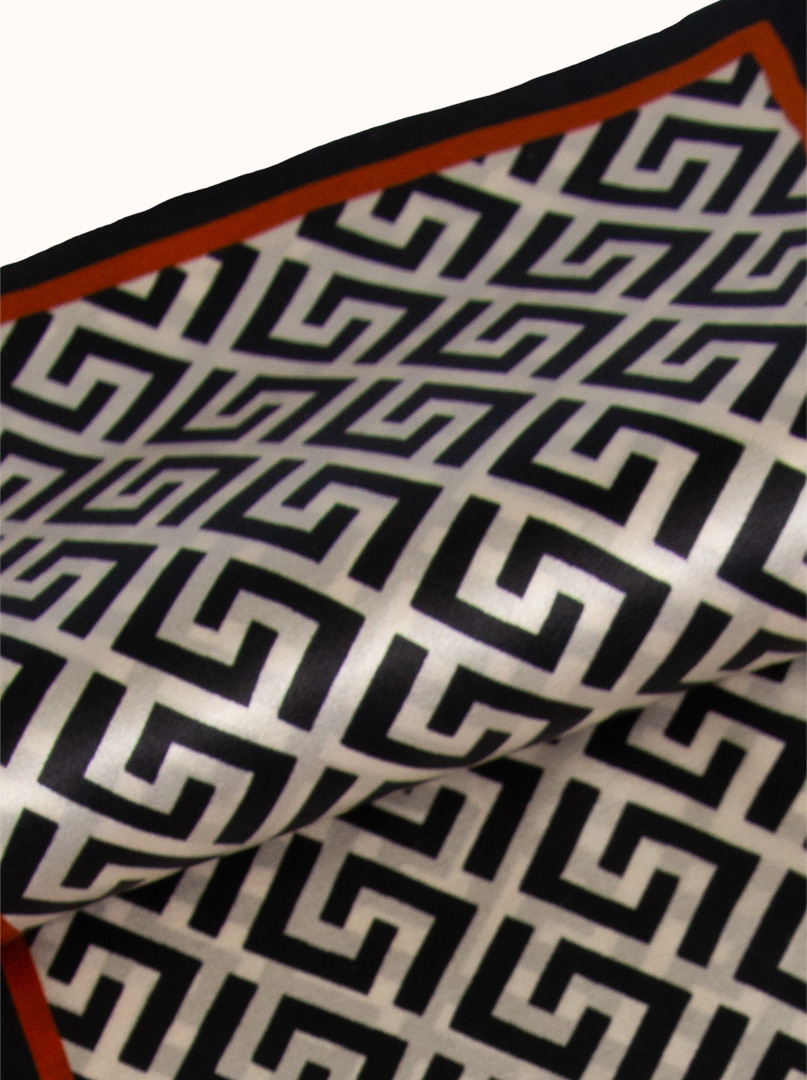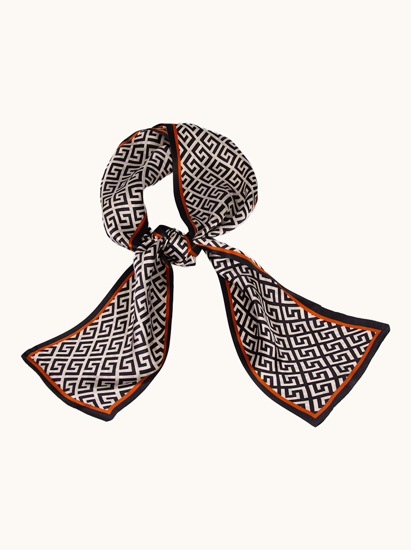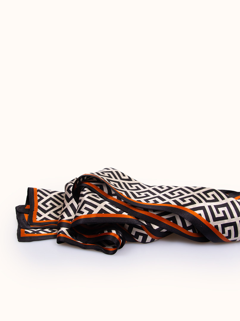 Gustowny, dwustronny wąski szal. Szalik wykonany z dwóch warstw wysokiej jakości jedwabiu, w kolorze we wzory. Idealnie sprawdzi się do codziennym kreacji.