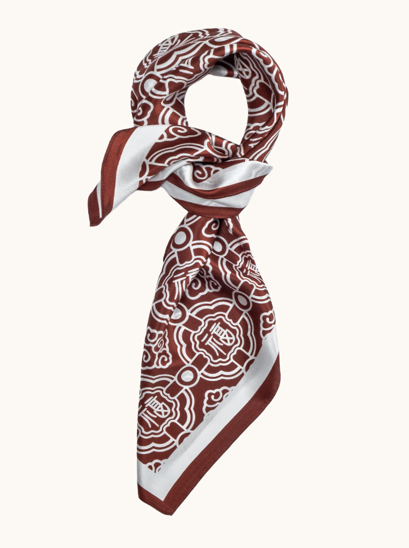 Jedwabna apaszka bordowa ze wzorem geometrycznym 65x65 cm