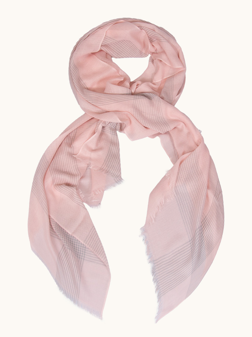 Lekki szal różowy w kratę 85 cm x 190 cm