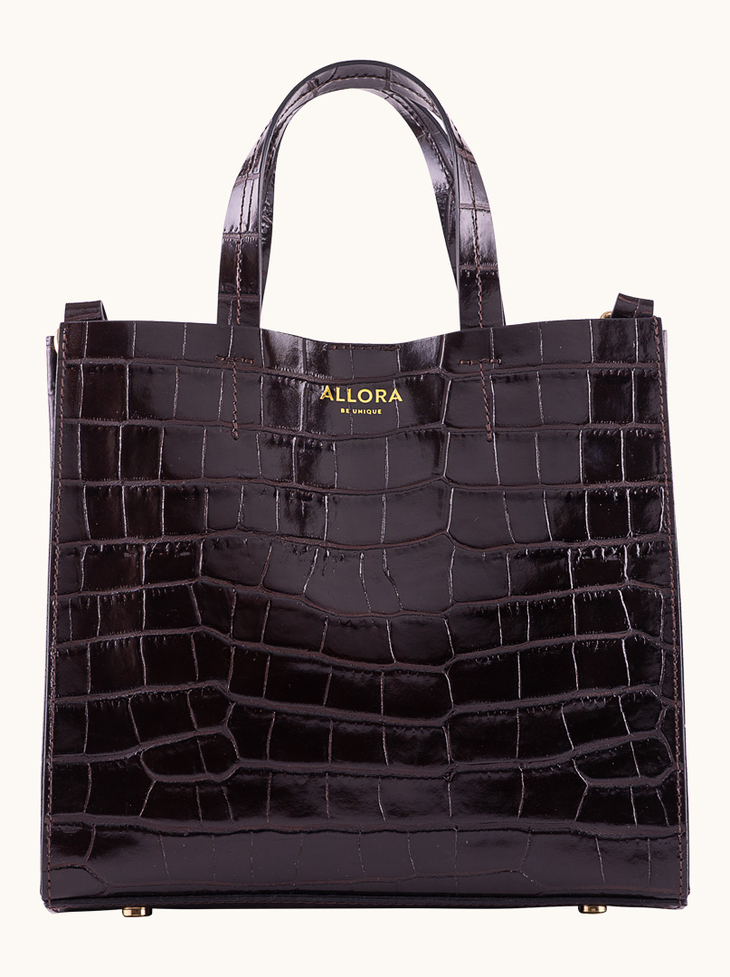 Ta torebka to czysta elegancja z charakterem – taka, która nie potrzebuje sezonowych trendów, żeby robić wrażenie. Wykonana z naturalnej skóry tłoczonej we wzór inspirowany krokodylem, zachwyca kolorem balansującym pomiędzy bordo a głęboką śliwką. To odcień szlachetny, nieoczywisty i bardzo wysmakowany, który pięknie pracuje ze światłem i dodaje stylizacjom głębi.