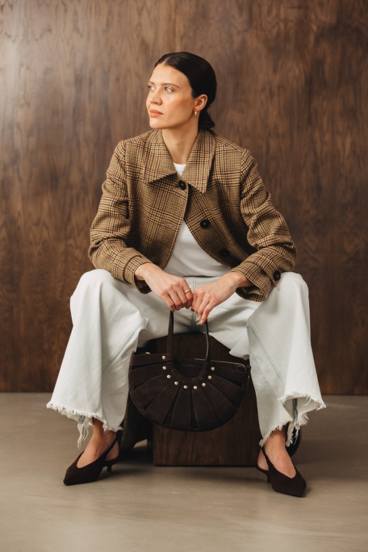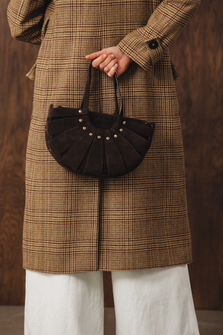 Ta torebka to idealne połączenie rzemiosła, mody i subtelnego luksusu. Wersja z naturalnego zamszu w kolorze głębokiej czekolady zachwyca miękkością skóry i dopracowaną, plecioną formą, która nadaje jej wyjątkowy, designerski charakter. To model inspirowany formą koszykową, ale w bardzo nowoczesnym, miejskim wydaniu.