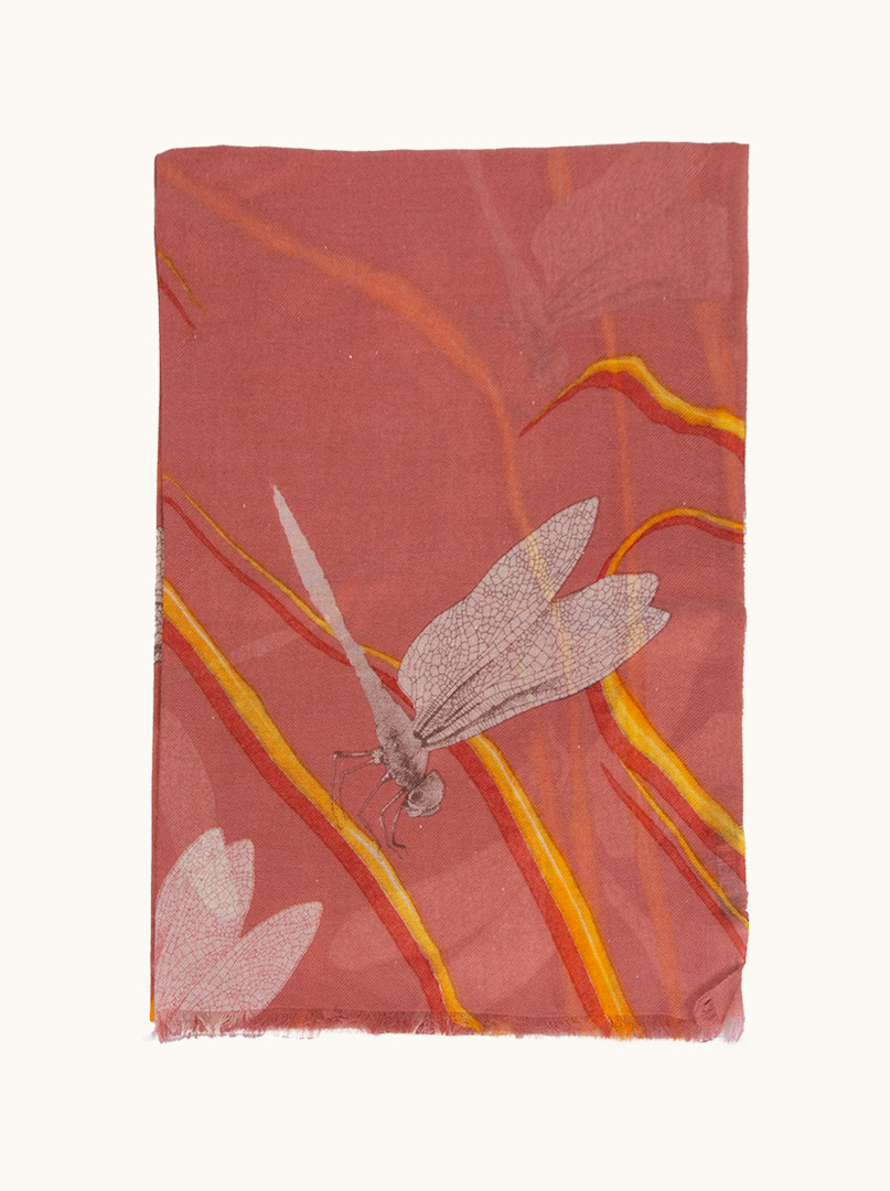 Koralowy odcień przełamany delikatnym motywem ważek i ciepłymi, złocistymi akcentami tworzy wyrazistą, ale wciąż elegancką kompozycję. To kolor, który ożywia stylizację i dodaje jej energii, zachowując przy tym subtelność i klasę.